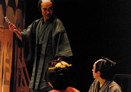 侍は 小春が治兵衛と心中するつもりであろうと推察。力になると言う。 治兵衛を死なせないでくれと言うおさんからの文を貰っていた小春は治兵衛を助けるため心変わりの芝居をうつ。 これを盗み聞いていた治兵衛は小春に斬りかかるが、逆に侍に縛り付けられてしまう。、 |