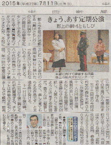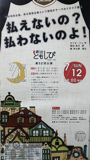 作 ダリオ・フォ 演出 森 彌太郎 2015年7月11日 PM7:00 12日 PM2:00 入場料 大人前売り1200円 当日1500円 高校生以下 600円 800円 |