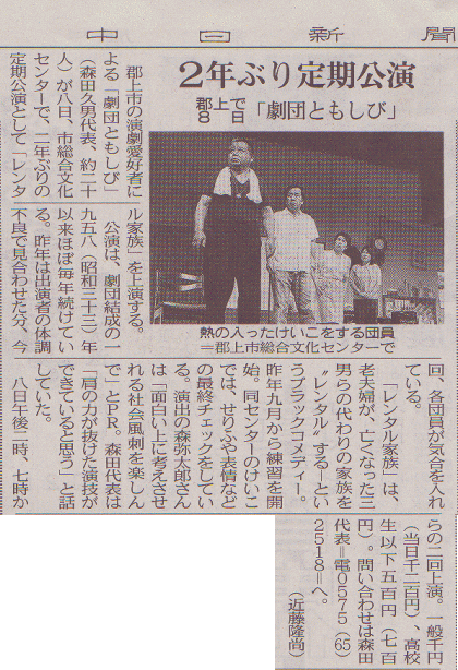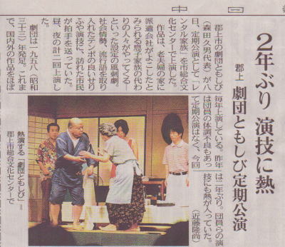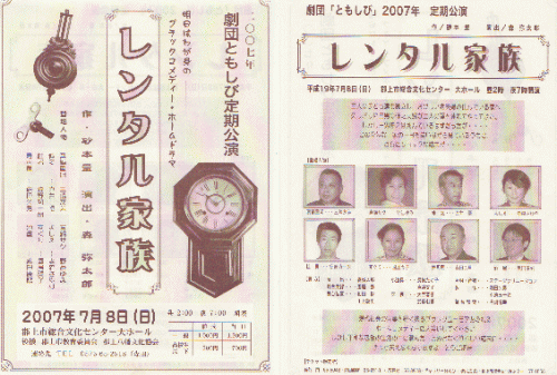 作・砂本 量 演出・森 弥太郎 2007年7月8日 郡上市総合文化センター 入場者数 14:00 193人 19:00 230人 |