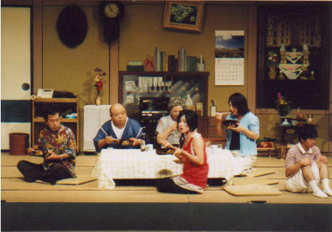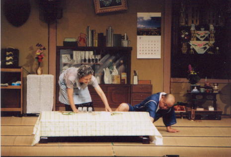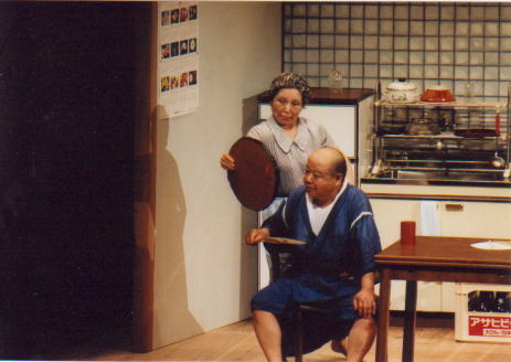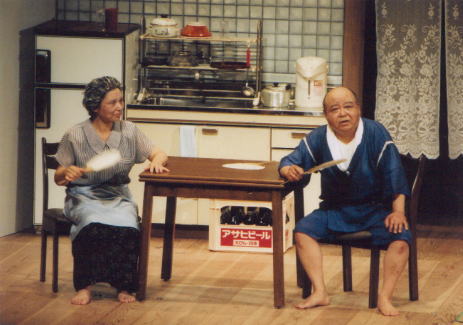 | 自分の苦労をした、昔話などを聞かせても まじめに聞きもせず ゲームをしたり 携帯電話をかまったり ピザのメニューを選ん だり。怒る重明。 | 嫁のよしえたちのとりなしで 自分の母親の思い出の曲 私の青空 を 熱唱する重明。 | |||||||||||||||||||||||||||||||||||||||||||||||