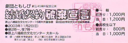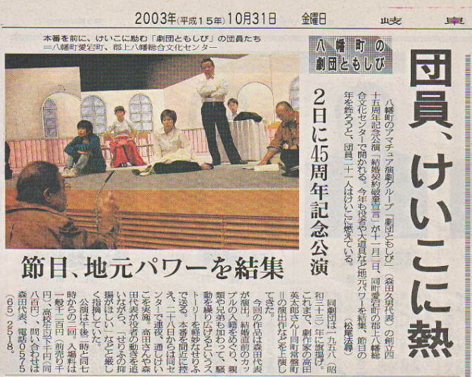平成15年11月2日、八幡文化センターで劇団ともしび創立45周年記念公演
