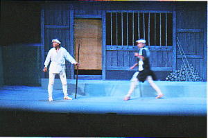 忠兵衛の故郷新口村には 色々な変装を した捕り方が 集まってきていた |