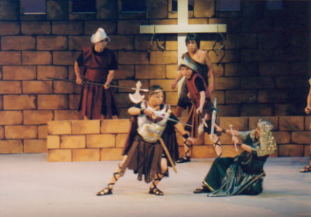 | 国王がメロスを許そうとする時、フェデリーゴが 正体を現し、国王に襲い掛かる |