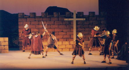 王側の兵士と フェデリーゴの息のかかった兵士たちとに 分かれて 激しい戦いに、、、、 |