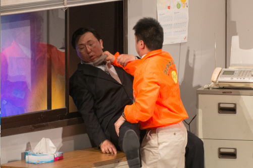 伴が遠部を追いかけて出て行った後 日系アメリカ人という日下が らくちん枕の 返品にやって来る。通販ではなく、ここで直に買ったという。