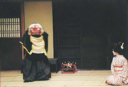 わしはちょっくら行ってくるから、ああた、そこのおキンさんの所で 袴を借りてきなさい! 紋はあわてて出て行く |