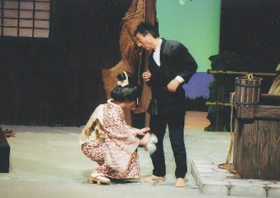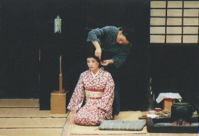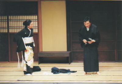 おかみさんの舞台での着物の生着替えはまことに圧巻でした。客席もどよめいていました。