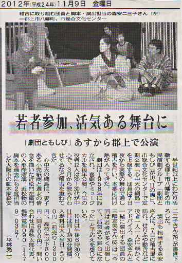 文化活動に 長年地道に取り組まれている 劇団ともしびの活動に 敬意を表します。今後とも